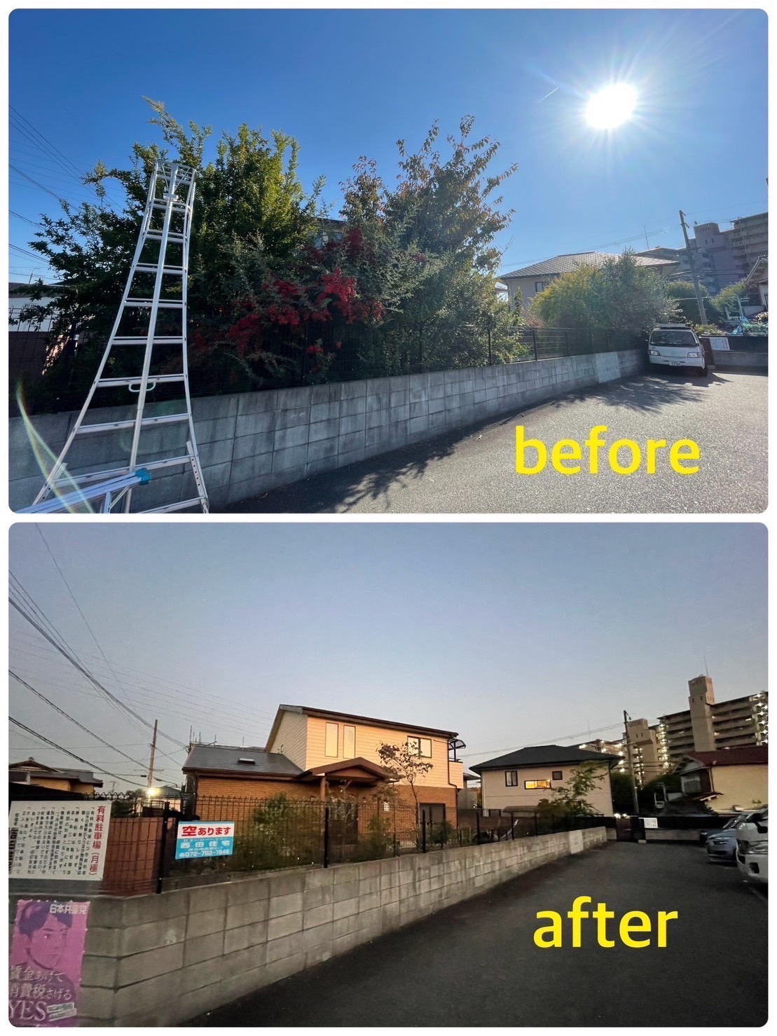 愛知県 安城市にて庭木の伐採・草刈りを行いました!