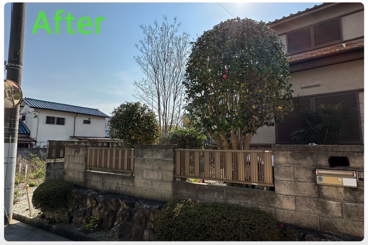 当社では庭木の剪定、伐採、草刈り、抜根はもちろんのこと外構工事やエクステリア工事まで自社で一気通貫で行っております。